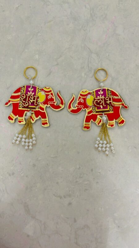 High Quality Handcrafted Hand Painted Elephant Design Shubh Labh Wall Hangings for Diwali Festival Grah Pravesh Home Decoration (1 pair)SR_2001