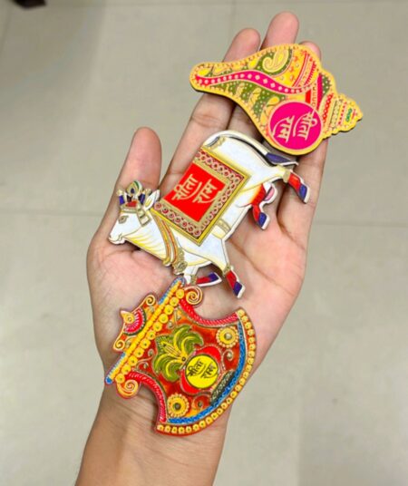 Puja Ram Ram Cow Wooden Tags Door Sticker Tags 1 Pairs self Stick(2 Piece) for Festival Specially Rakhi Diwali SR_5241