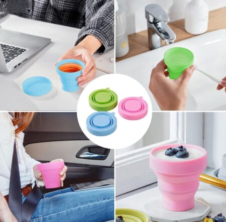 Silicone Foldable Collapsible Cup Collapsible Drinking Silicone Mug Cup with Lid Outdoor Camping Travel Pack of 1Pc SR_19138