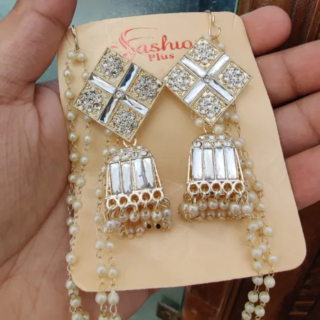 Beautifully Premium Quality Kundan Earings With Beautiful Earchain Combo SR-9612