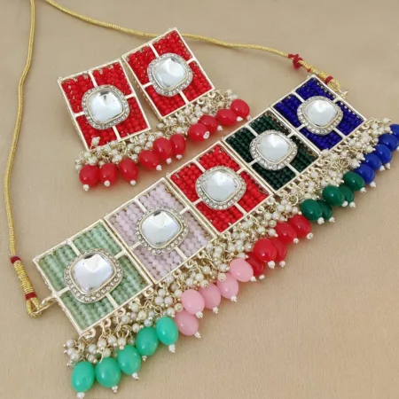 Beautifully Premium Quality Kundan Pearl Choker Necklace With Beautiful Earings SR_9624
