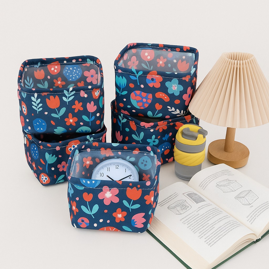🌸 Pack of 5 Multi-Purpose Storage Baskets | Foldable & Waterproof | Cute Floral Print Organizers 🌟 SR_5412
