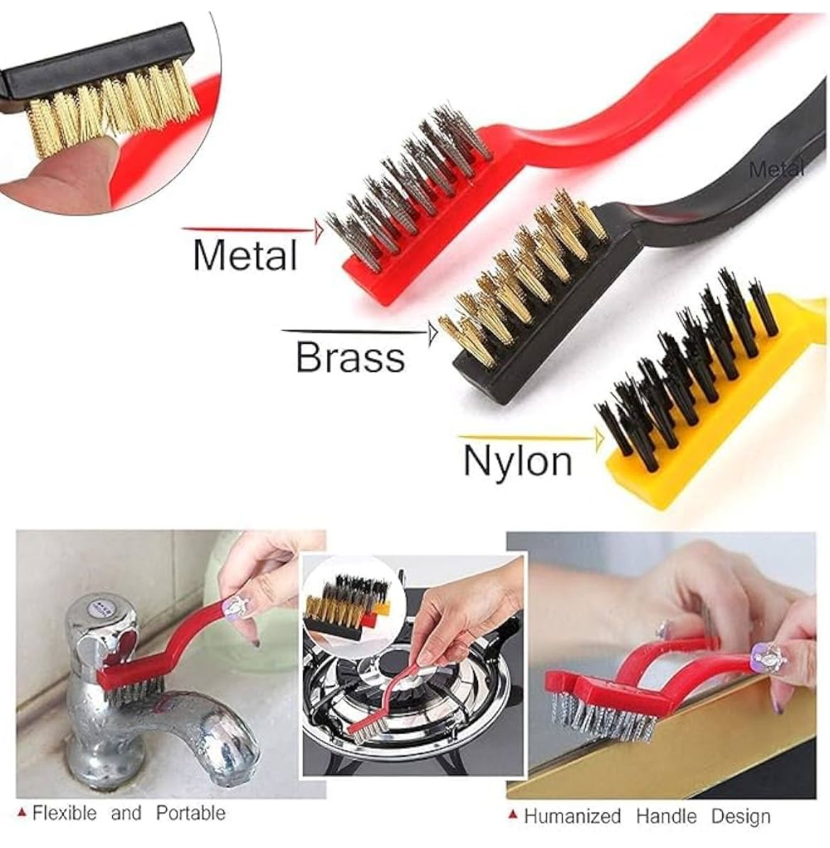 ✅ Set of 3 brushes with different bristle types – Brass, Nylon & Stainless Steel