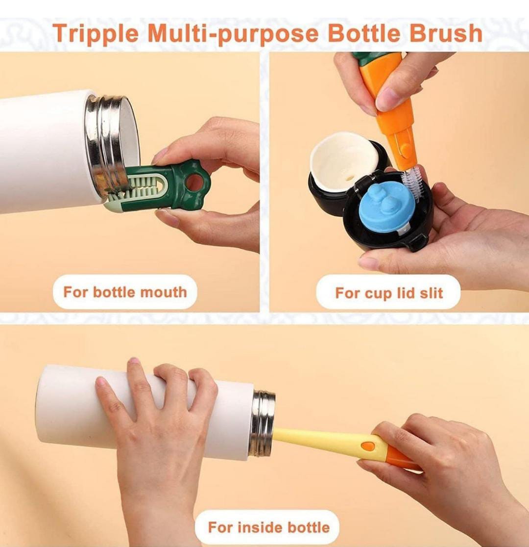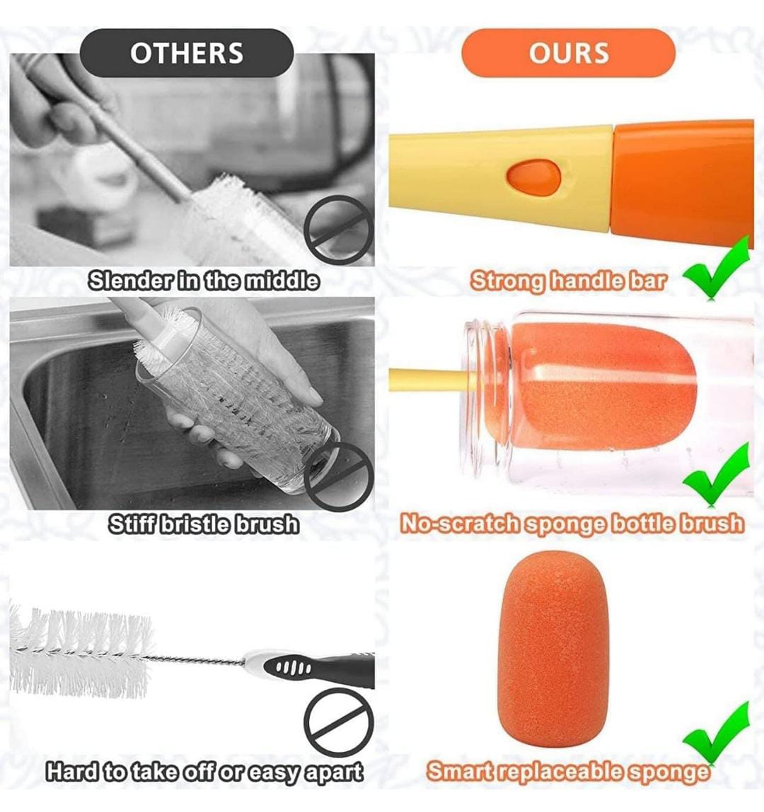 1 pc Bottle Brush Cleaner, Multifunctional Cleaning Brush 3 in 1 Replaceable Sponge Bottle Brush SR_541421