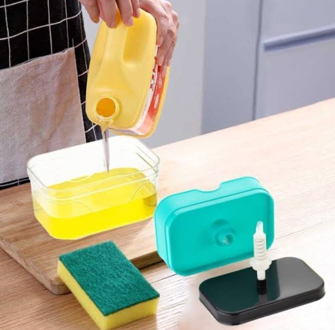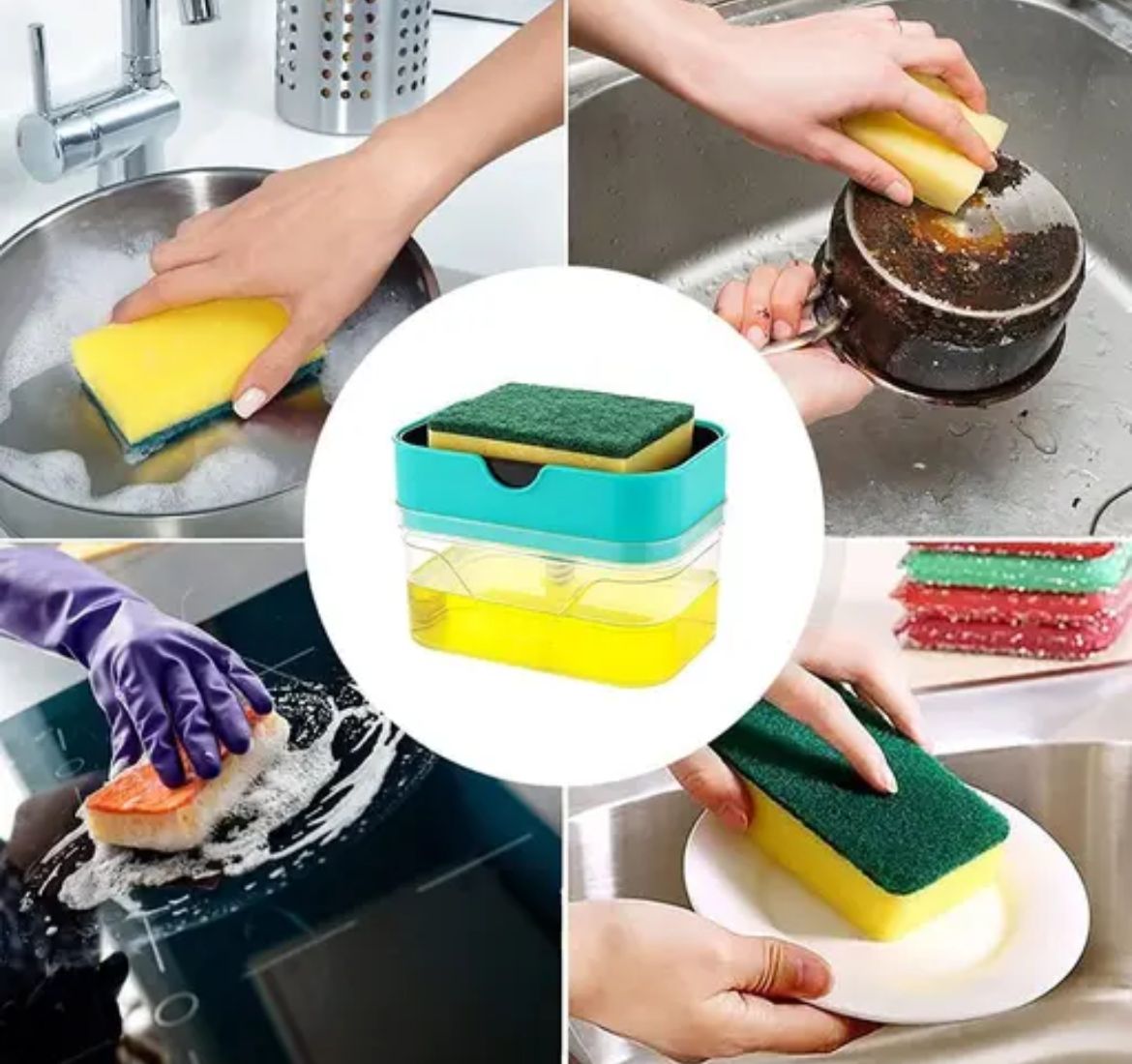 Make your kitchen chores easier and mess-free with this 2-in-1 Soap Dispenser with Sponge Holder. Just press the sponge on the pump, and the perfect amount of soap is dispensed directly onto it – no more wastage or hassle!