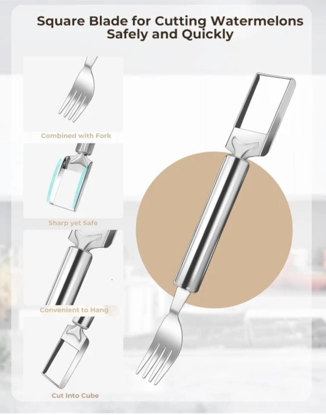 2-in-1 Watermelon Fork Slicer Cutter – Stainless Steel Watermelon Slicer Tool, Portable Fruit Cutter for Camping, SR_5784