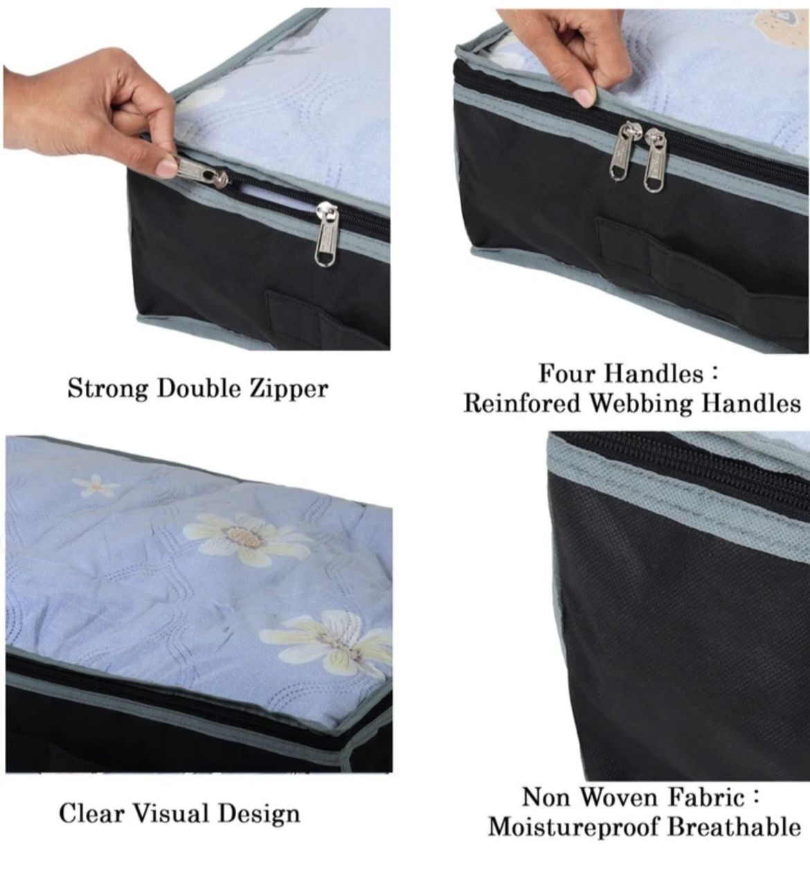 4 Handle Quilt Storage Bag Non Woven Fabric Wardrobe Organizer Blanket Comforter Storage Bag Quilt Bag Under-bed Storage Organizer Black & Pack of 1 SR_857