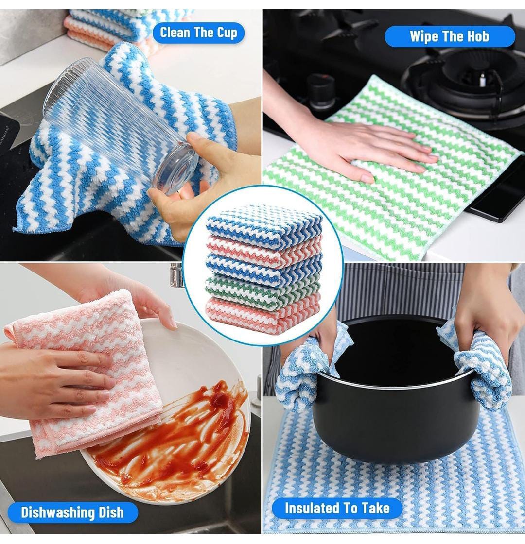 5 Pack Microfiber Cleaning Cloths – Ultra Absorbent Kitchen Towels for Counters & Dishes, Quick Dry & Reusable – Multicolor SR_51788
