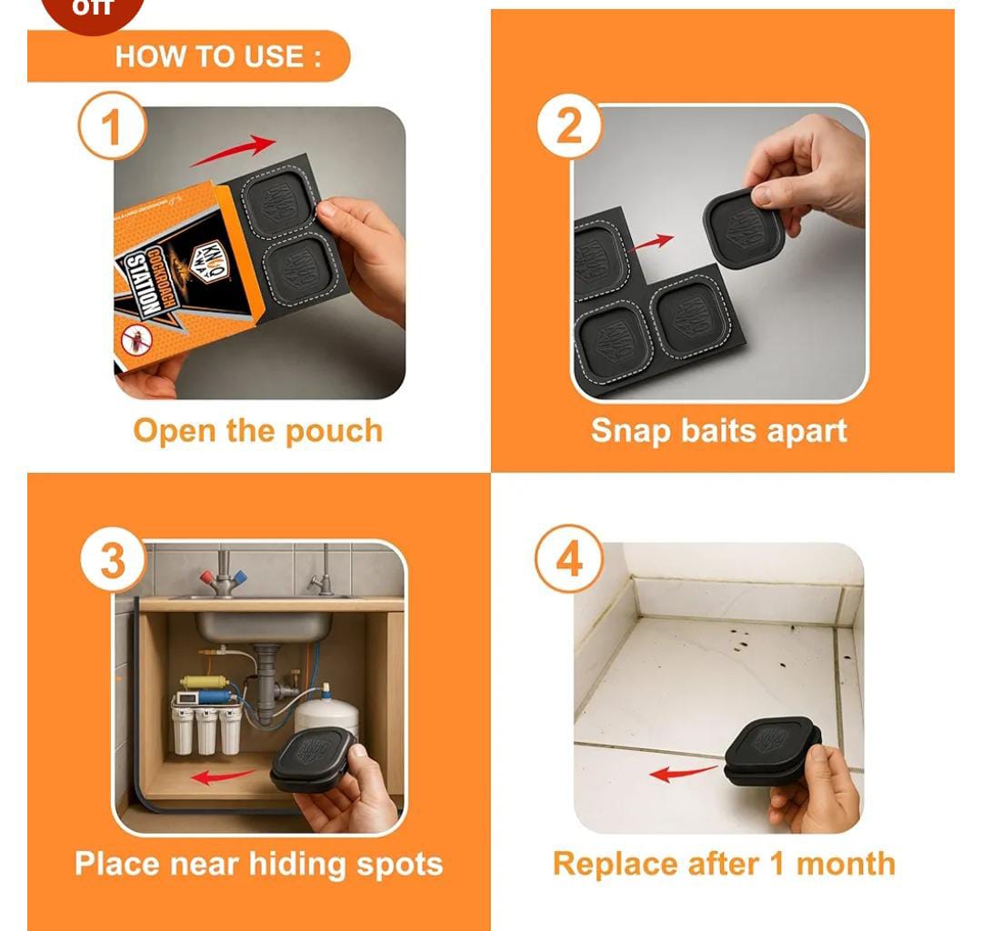Anti Cockroach Bait Station, New and Improved, Pesticide-Free, No Odour, Long-Lasting (Pack of 6 Baits) SR_8745