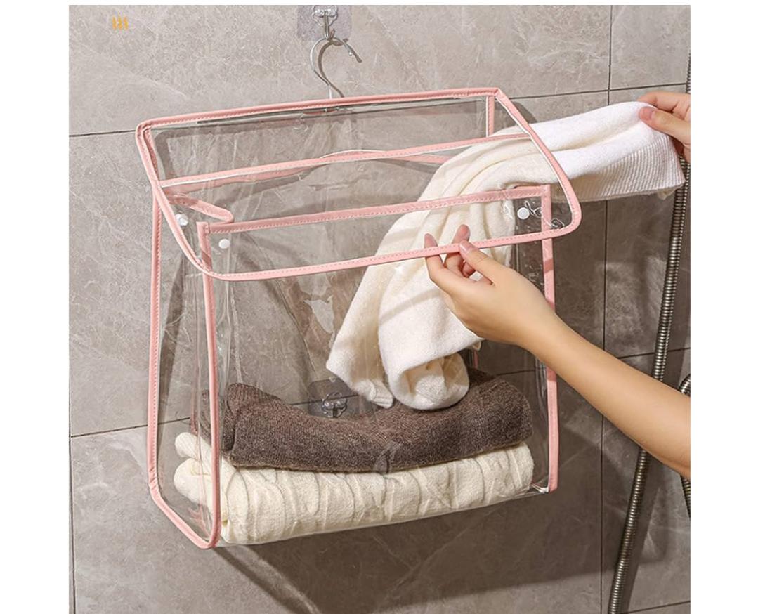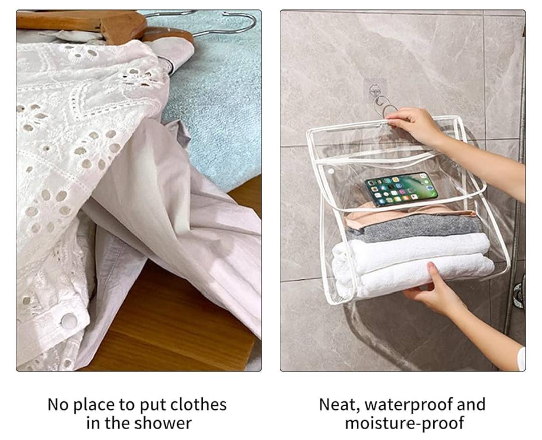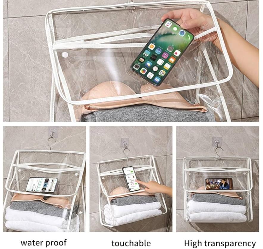 Bathroom Waterproof Hanging Bag, Waterproof Bathroom Clear Bag with Mobile Pocket, Clear Bathroom Shower Bag, Bath Towel Travel Organizer SR_48784
