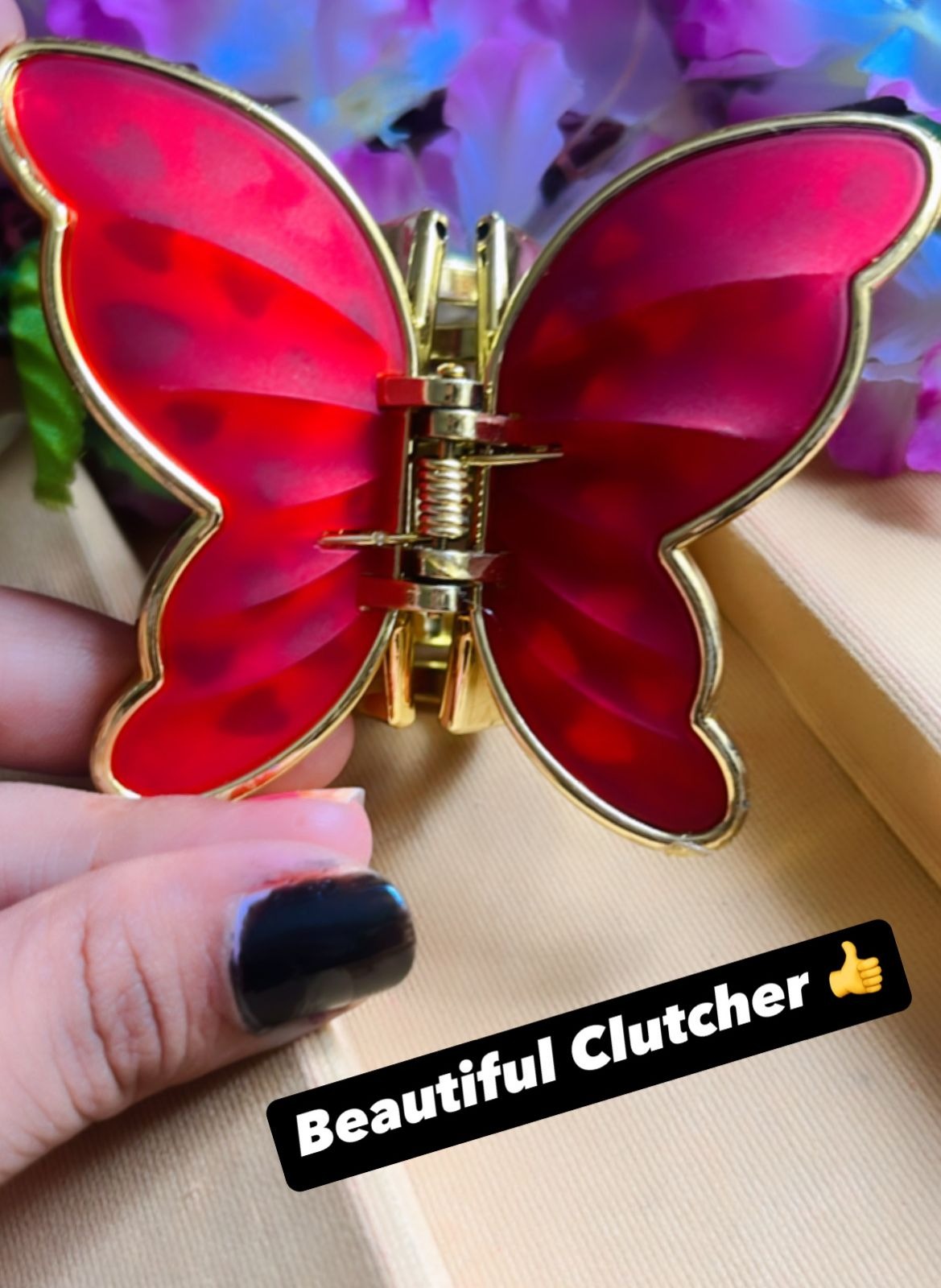 Add a touch of elegance to your hairstyle with this stunning Butterfly Hair Clutcher. Designed in a vibrant red shade with a shiny golden outline, this clutcher gives you a graceful and charming look in seconds. Strong grip and smooth edges make it perfect for all hair types.