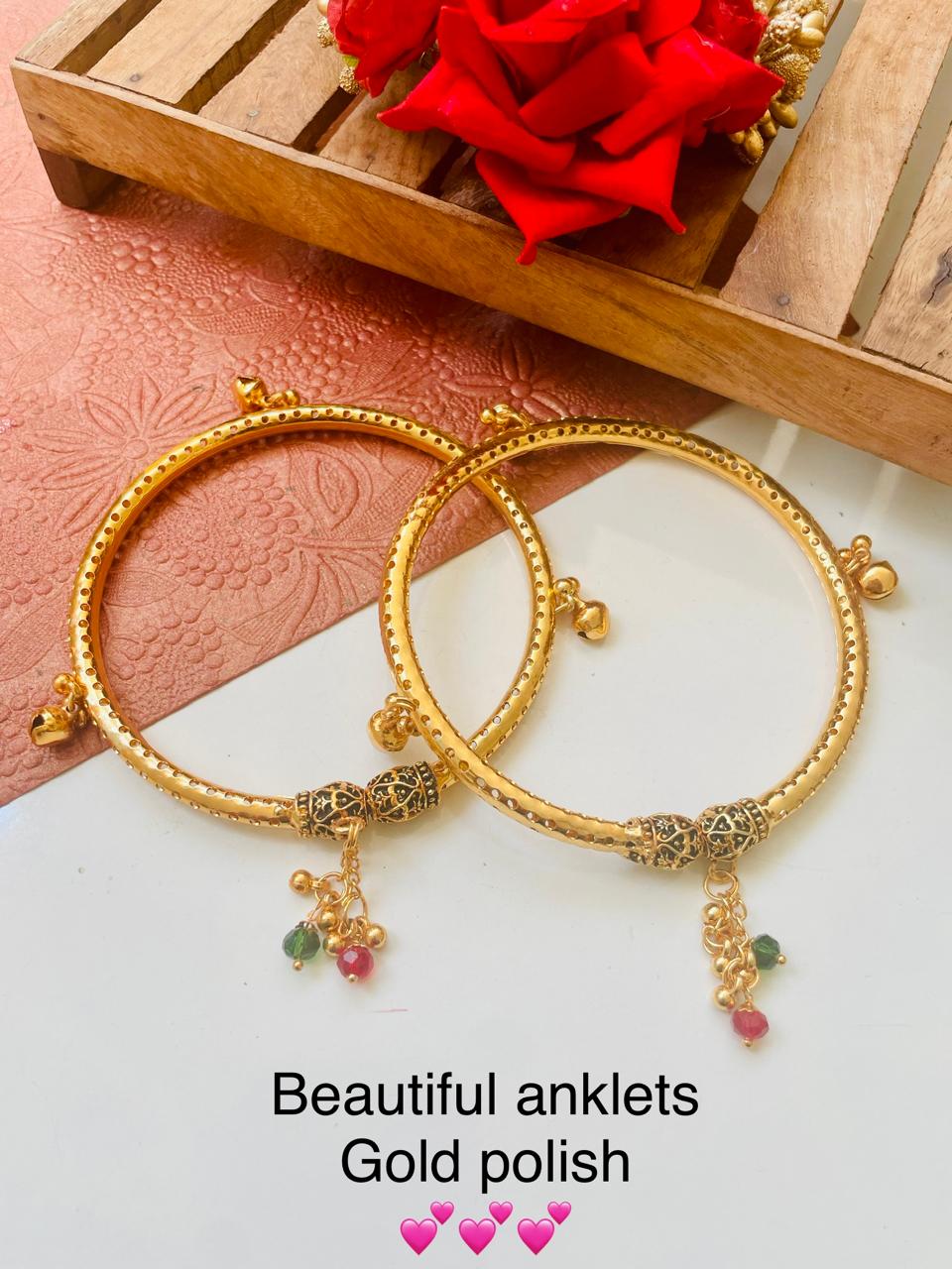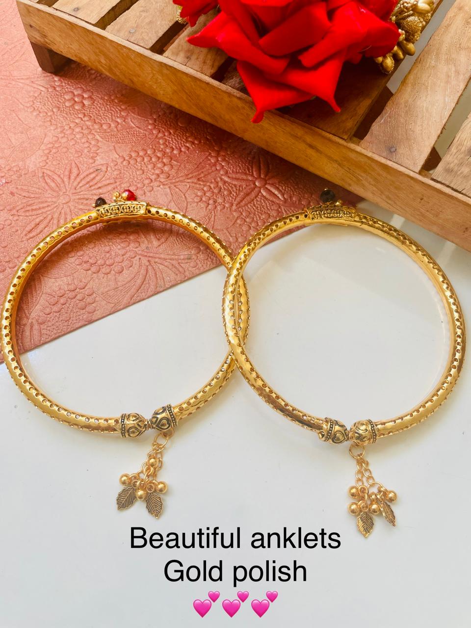 Enhance your traditional charm with our Beautiful Gold Polish Anklets — a perfect blend of elegance and tradition!