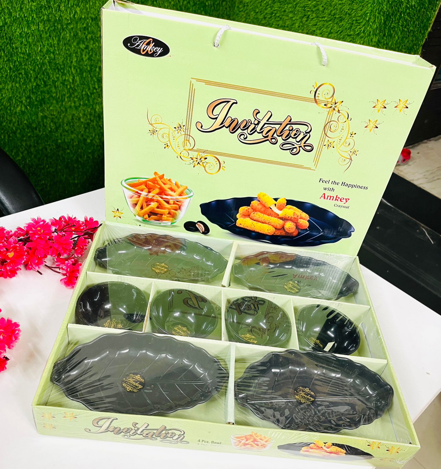 Be the first to review “Beautiful Set For Kitchen Contain 4 Bowl and 4 Leaf Shape Snack Tray SR_11264” Cancel reply