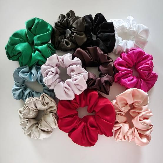 Beautiful Silk Scrunchie Rubber In Random Color For Women Girls (Pack Of 5) SR_18878