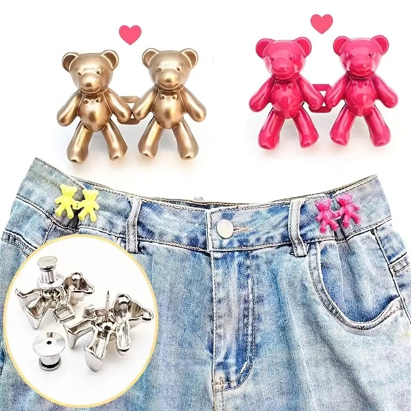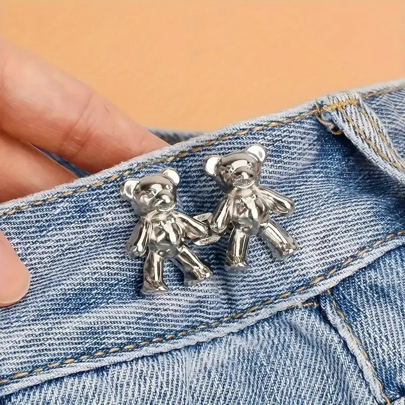 Beautiful Teady Bear Jean Buttons Pins Tightener Clip Bear Pants Clip Bear Buttons for Jeans Women Skirt In Random Color (1 Pair ) SR_18887