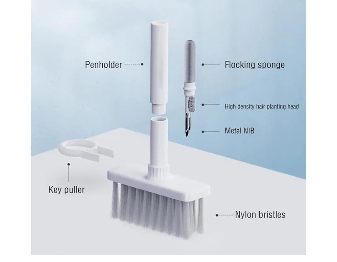 Cleaning Soft Brush Keyboard Cleaner 5-in-1 Multi-Function Computer Cleaning Tools Kit Corner Gap Duster Keycap Puller for Bluetooth Earphones Lego Laptop AirPods Pro Camera Lens (White) SR_58754