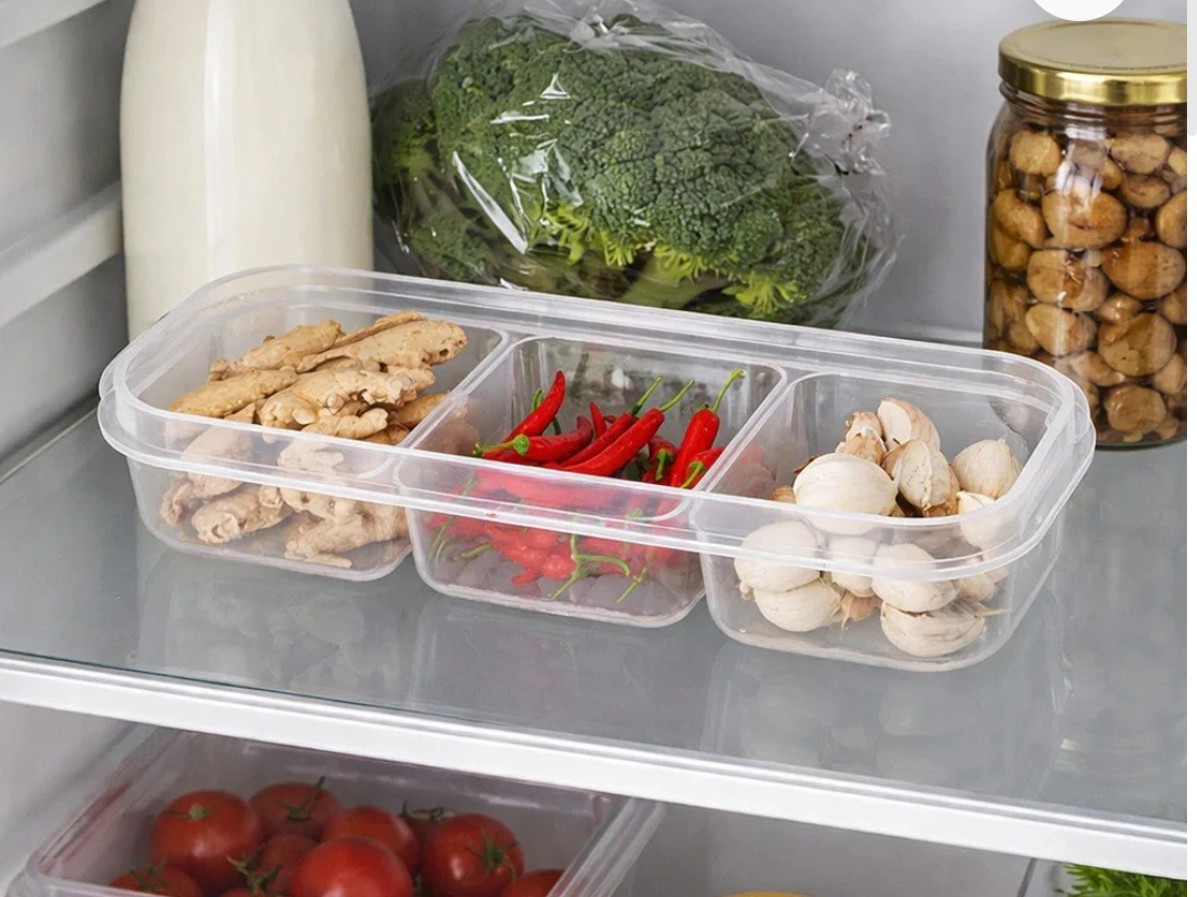 Clear Plastic Food Storage Container with 3 Compartments, Transparent Spice Organizer Box with Lid, Airtight Kitchen Storage for Dry Fruits, Snacks & Masala (Multi-Purpose Use) SR_87463