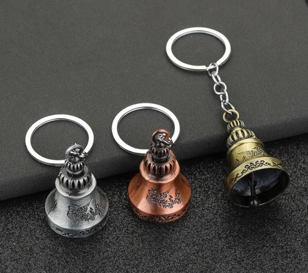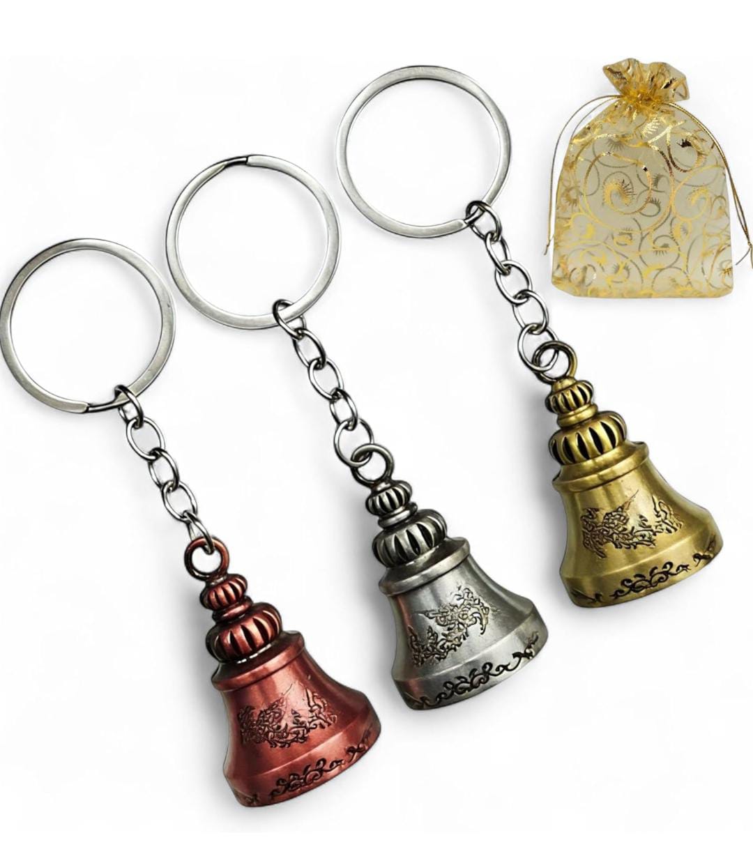 Combo of 3 Guardian Bell Keychains | Protective Lucky Charms in Silver, Gold & Bronze | Zinc Alloy Bells for Motorcyclists, Travel & Everyday Carry SR_5451
