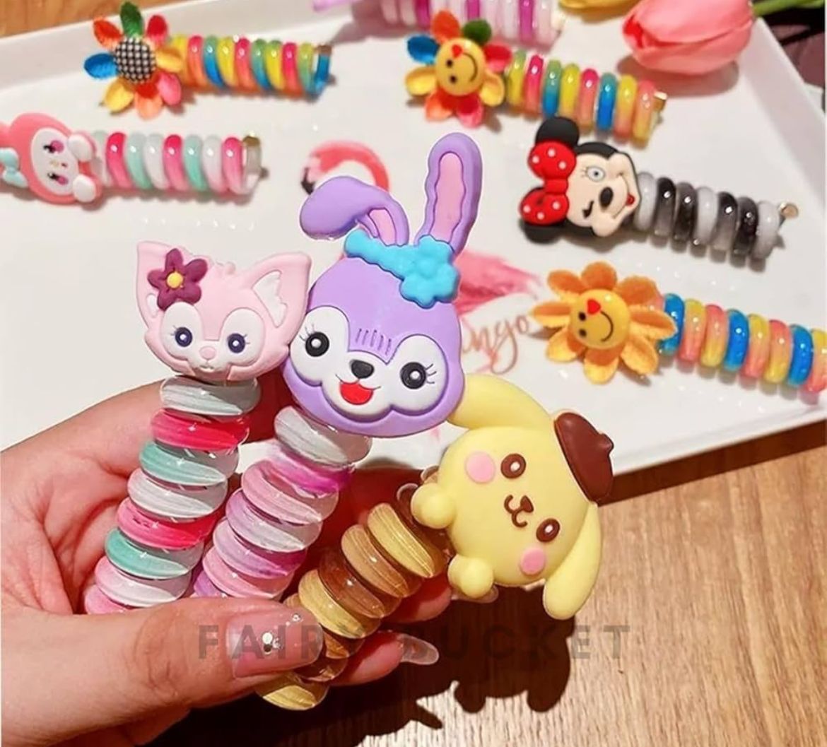 These soft and stretchable spiral bands are designed to easily twist around ponytails, braids, or buns, giving a neat and creative look without hurting the hair. Lightweight, flexible, and super cute – a must-have in every little girl’s hair accessory collection.