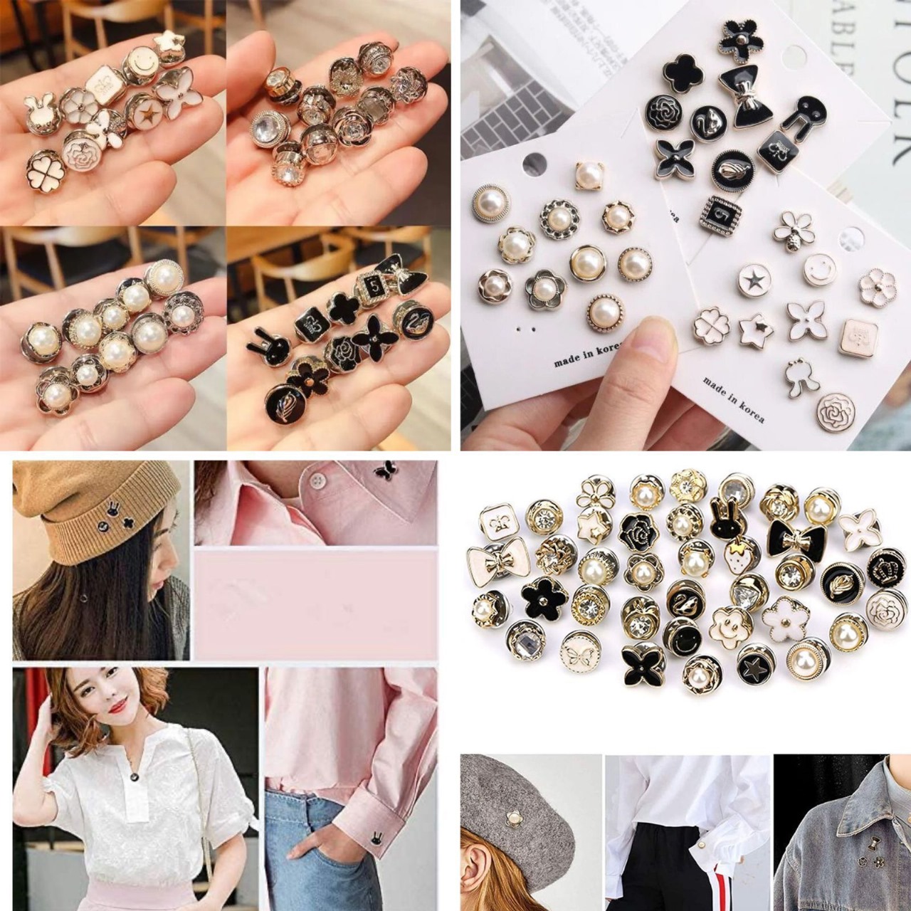 dd a touch of timeless elegance to your outfits with our Fancy Woman Style Round Shank Pearl Metal Decorative Button Pins. Designed with a luxurious pearl center and premium metal finish, these button pins are perfect for enhancing blouses, dresses, sweaters, jackets, and ethnic wear.