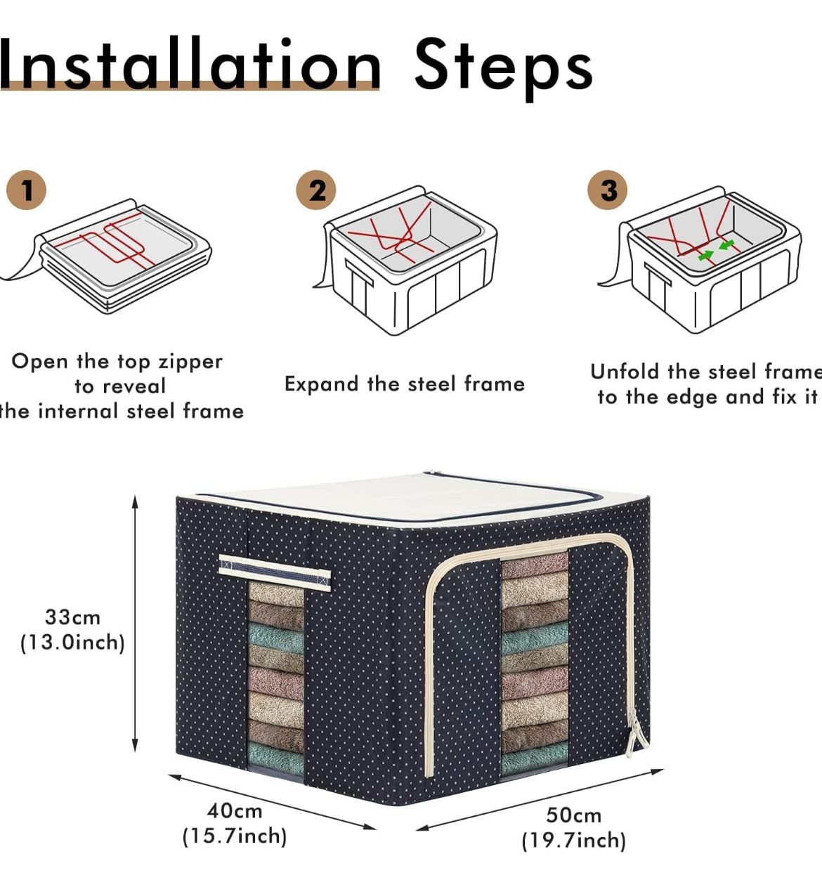 Ideal For: Wardrobe organization, storing sarees, baby clothes, woolens, bedsheets, toys, and more.