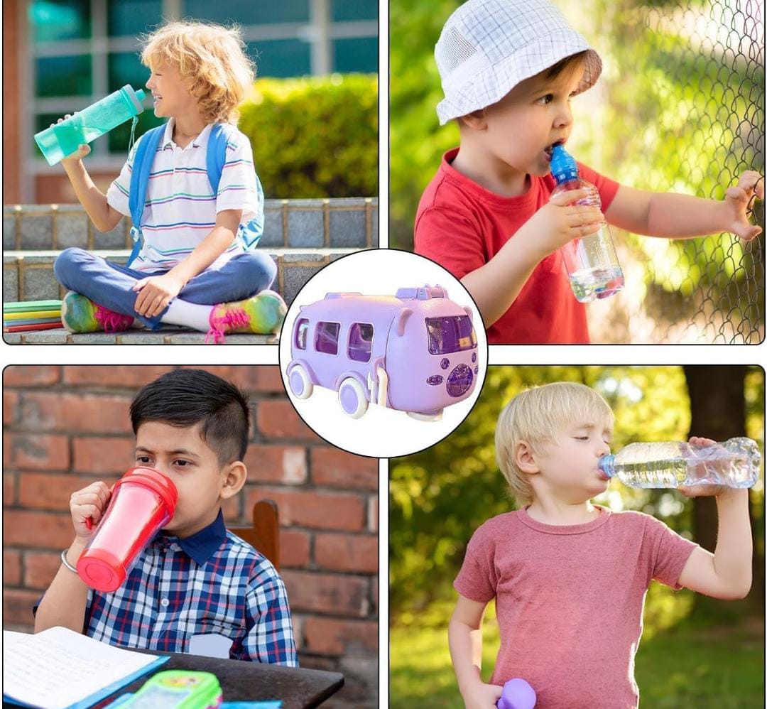 Kids Water Bottle With Strap, Purple Bus Design, Portable Beverage Container for Children, Novelty Vehicle Shape With Carrying Lanyard SR_877454