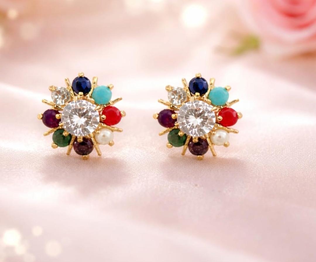 multicolor AD American American diamond and cubic zirconia studs and earrings for womens and girls, colorful studs or daily wear SR_654542