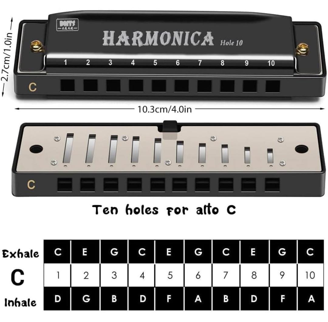 Musical Instrument Titanium Copper Core Harmonica C Key 10 Hole 20 Tone for Beginners Durable Clear Sound, Birthday Gifts for Kids Adults, Suitable for Blues Folk, Black SR_686564