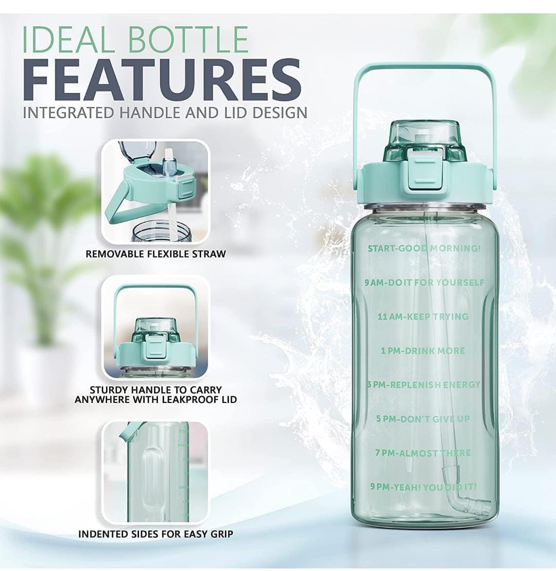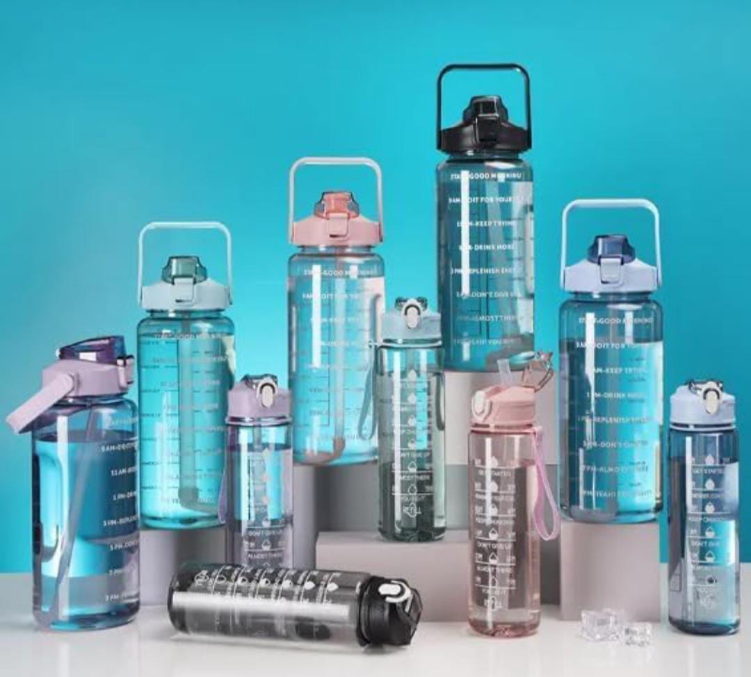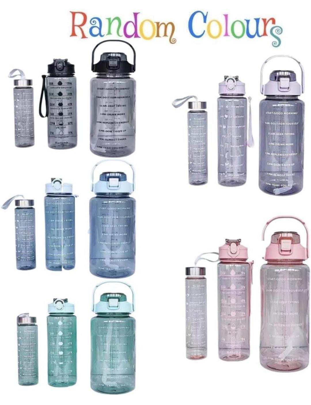 (PACK OF 3) Transparent Water Bottle 2000ML, 900ML, 300ML with Motivational Time Marker, Leakproof Durable Sipper Water bottle for office, School, gym (MULTI) SR_575