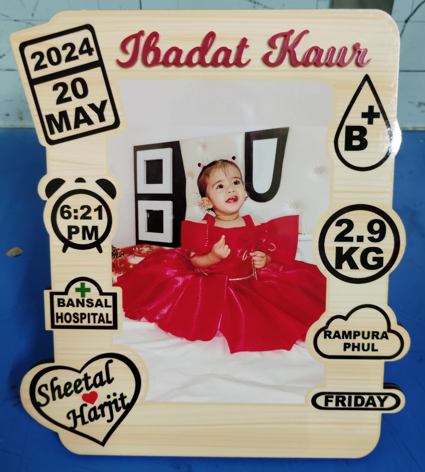 Personalized Baby Biography Wooden Photo Frame | Newborn Details Keepsake Pic Frame | Memorable Baby birth Stats Frame Size 7*9 inch| SR_1503