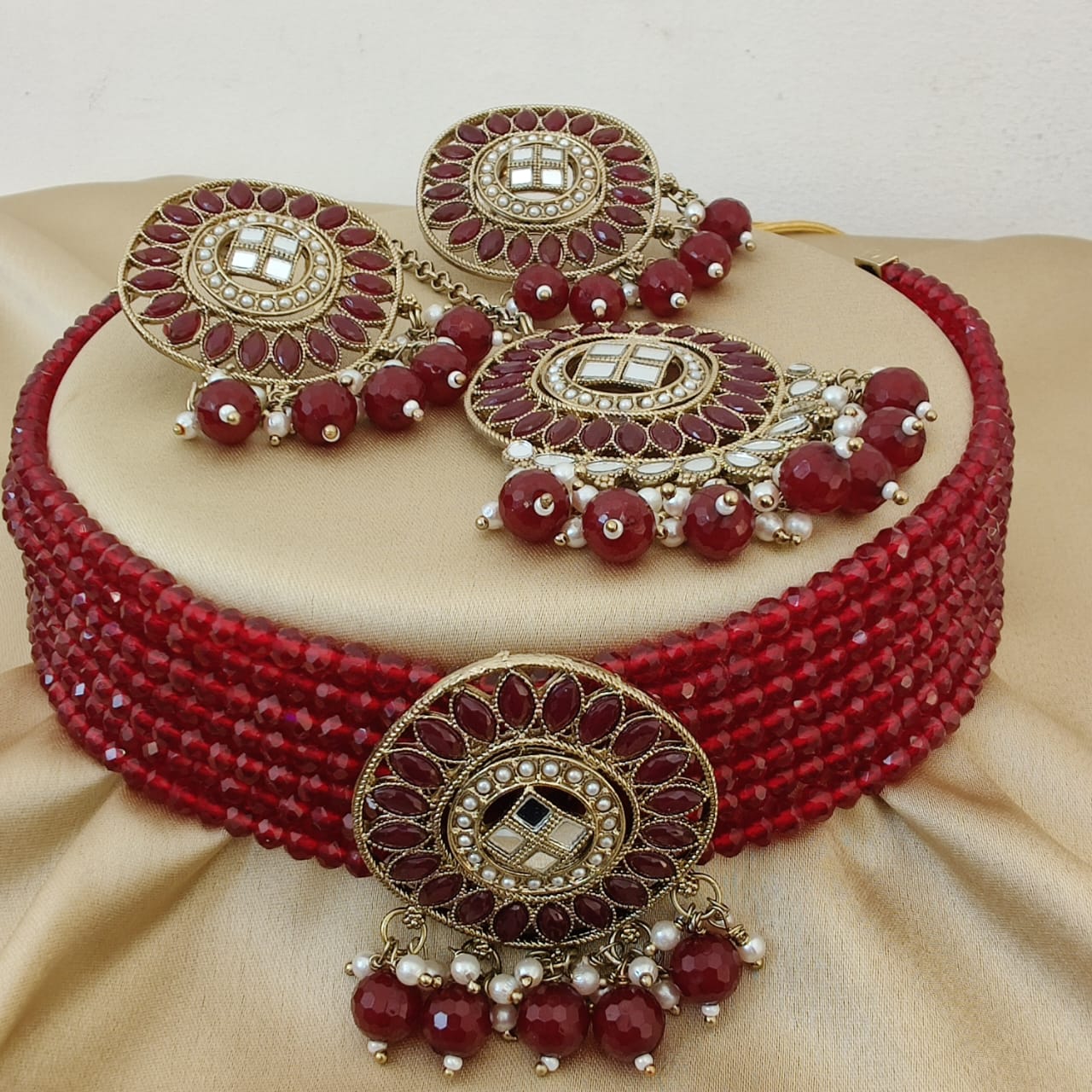 Pretty Beautifully Premium Quality Mehandi Polish Choker Neaklace With Beautiful Big Size Earings And Big Size Tika 💃💃💃💃💃💃💃💃💃💃💃💃 SR_15056
