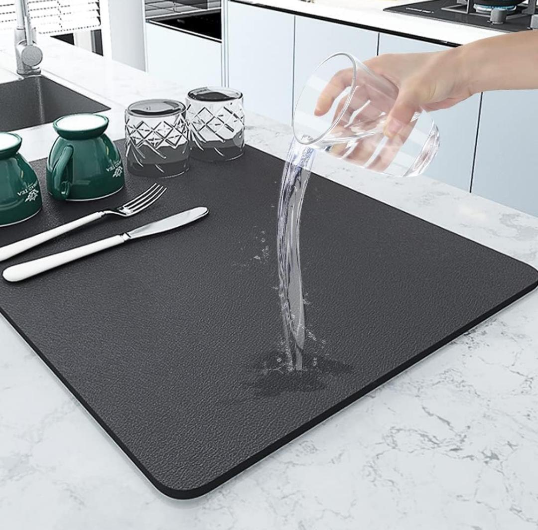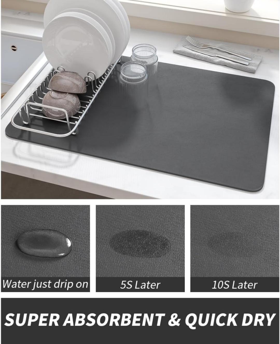 Quick Dry Water Absorbent mat | Placemat for Dish Drying with Non-Slip Rubber Backed | Super Draining Mat for Kitchen (40x60cm) SR_6898