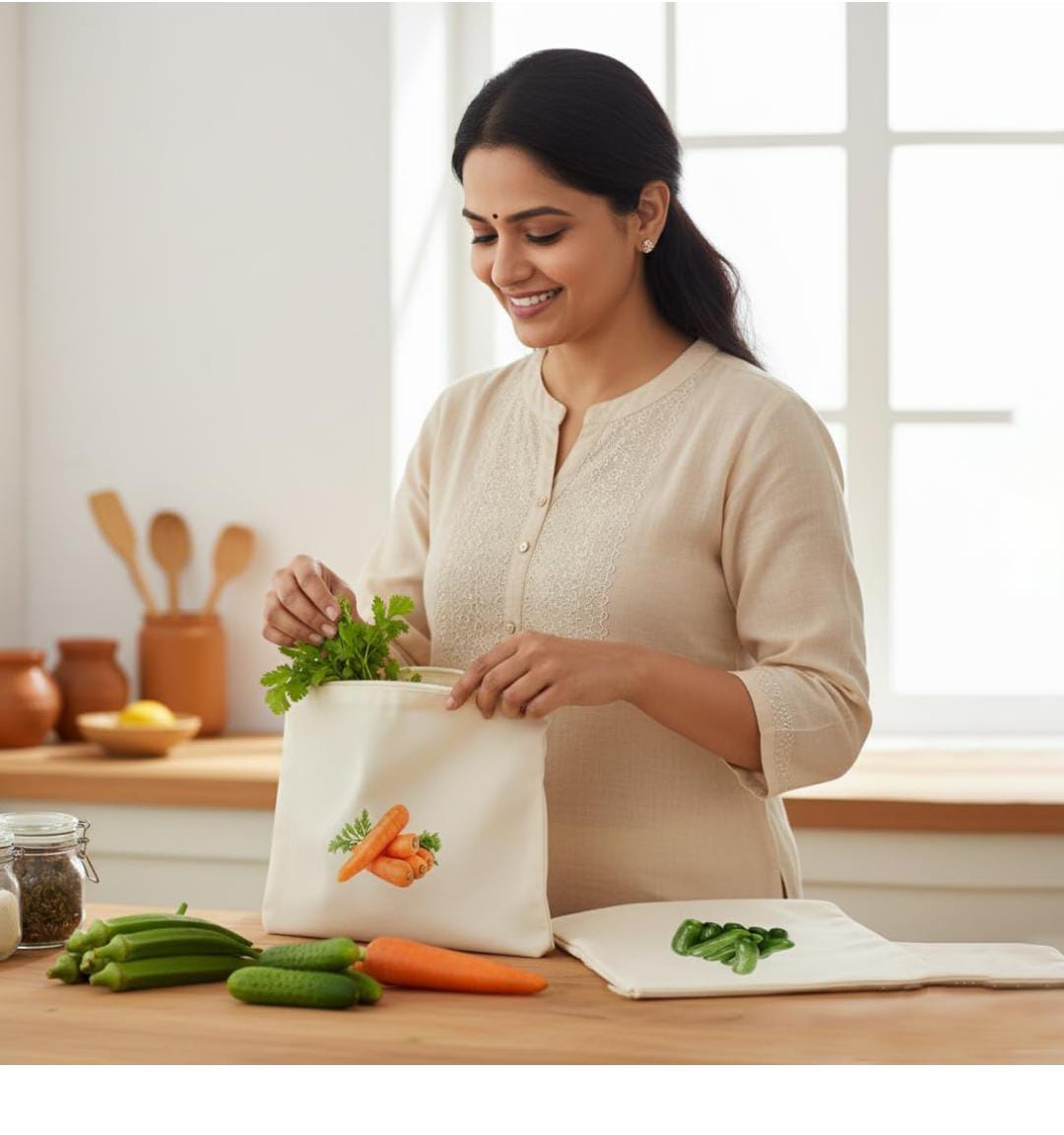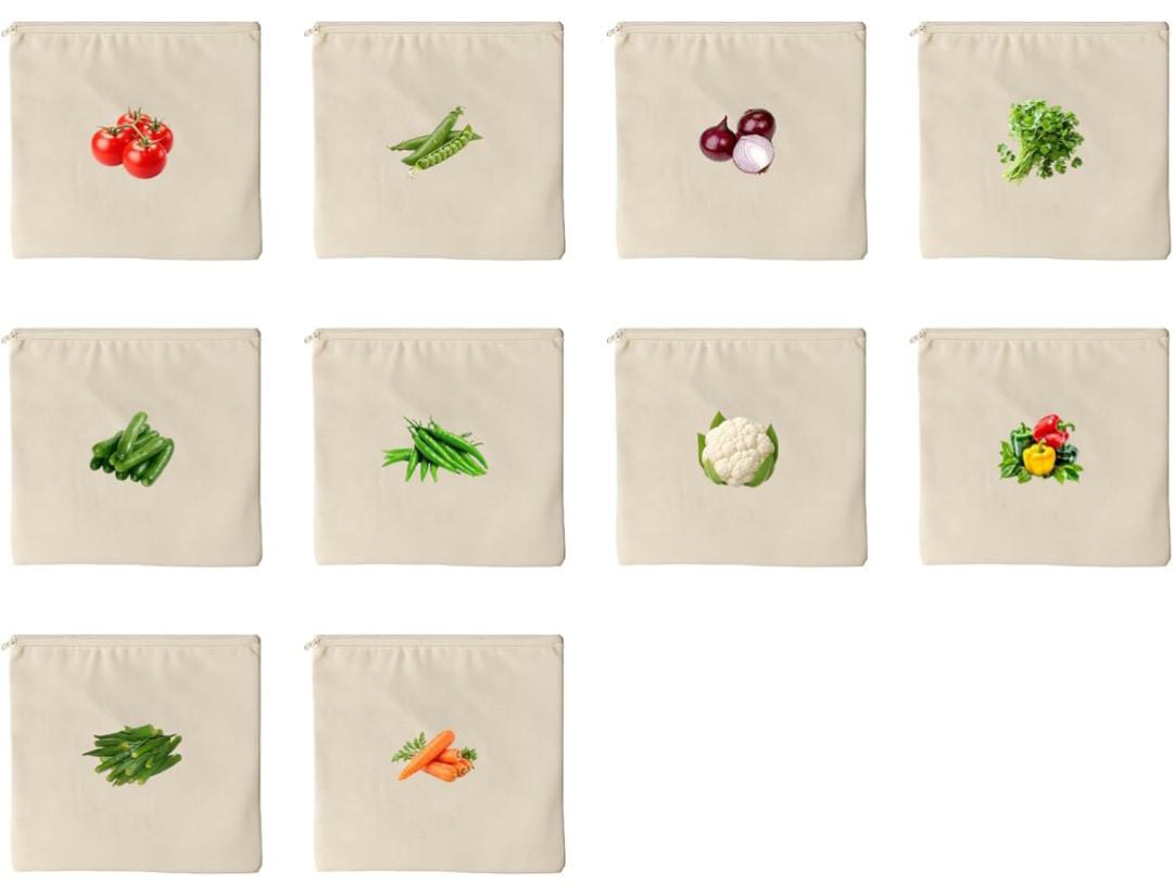 Be the first to review “Reusable 100% Cotton Vegetable Bags for Fridge | Breathable & Washable Produce Storage Bags | Eco-Friendly Plastic-Free Cloth Organizer for Vegetables | 12×12 Inch | Pack of 10 SR_5787” Cancel reply