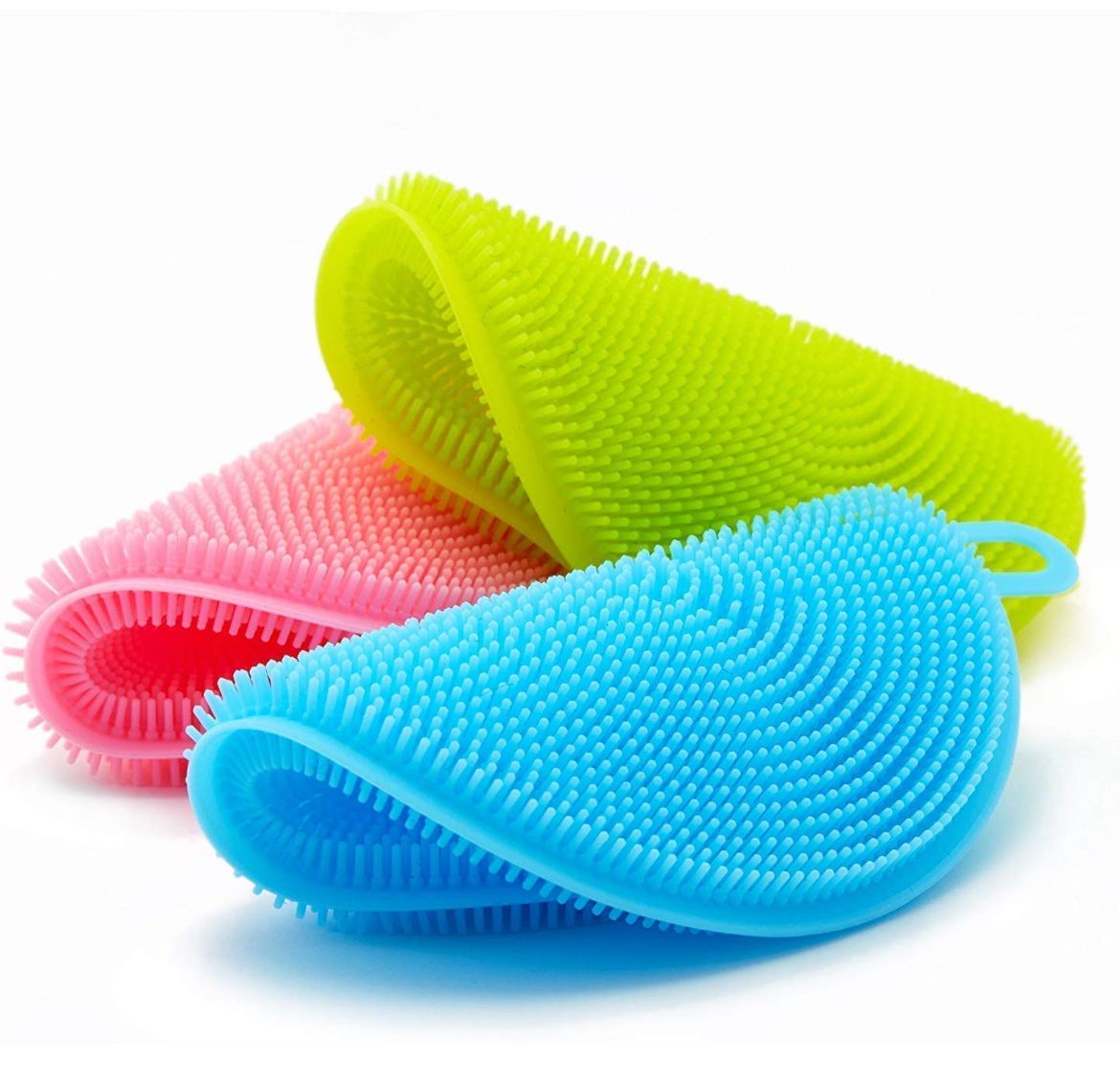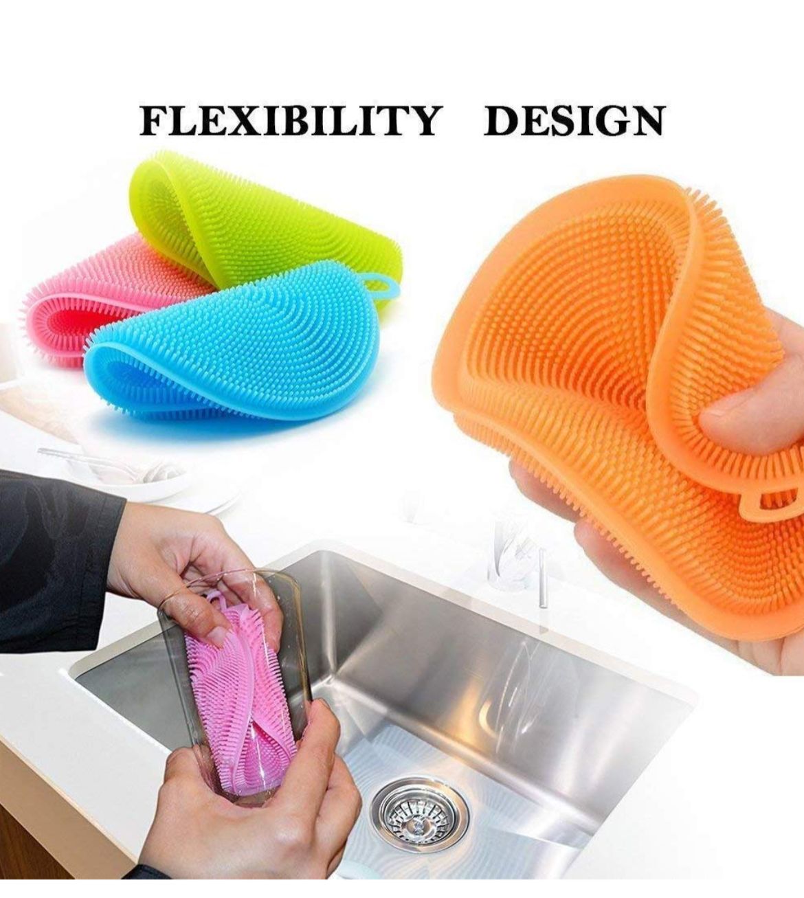 Silicon wipes / Reusable Silicon wipes / Silicon body shower scrubber / Silicon Dish Washing wipes (5 Pcs. Random Colour) SR_5487)
