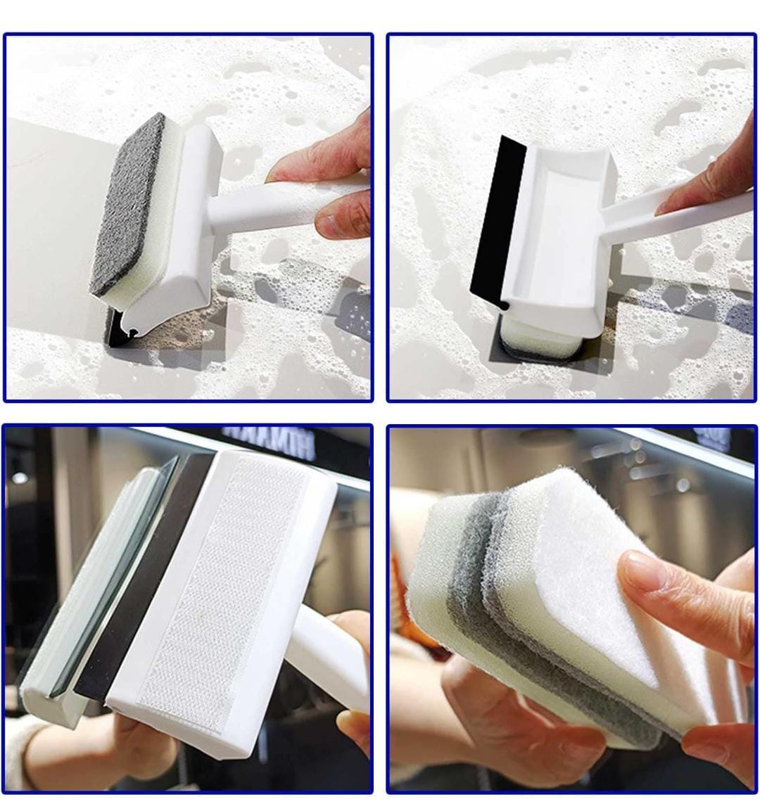SNOFER Glass Cleaning Tools 2 in 1 Glass Wiper Cleaning Brush Mirror Grout Tile Cleaner Washing Pot Brush Double-Sided Glass Wipe Bathroom Wiper Window Glass Wiper SR_605