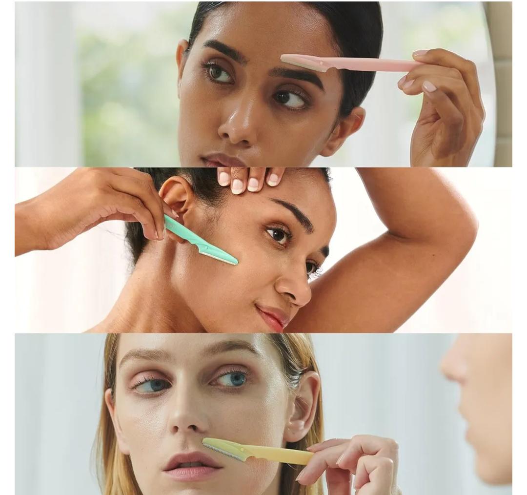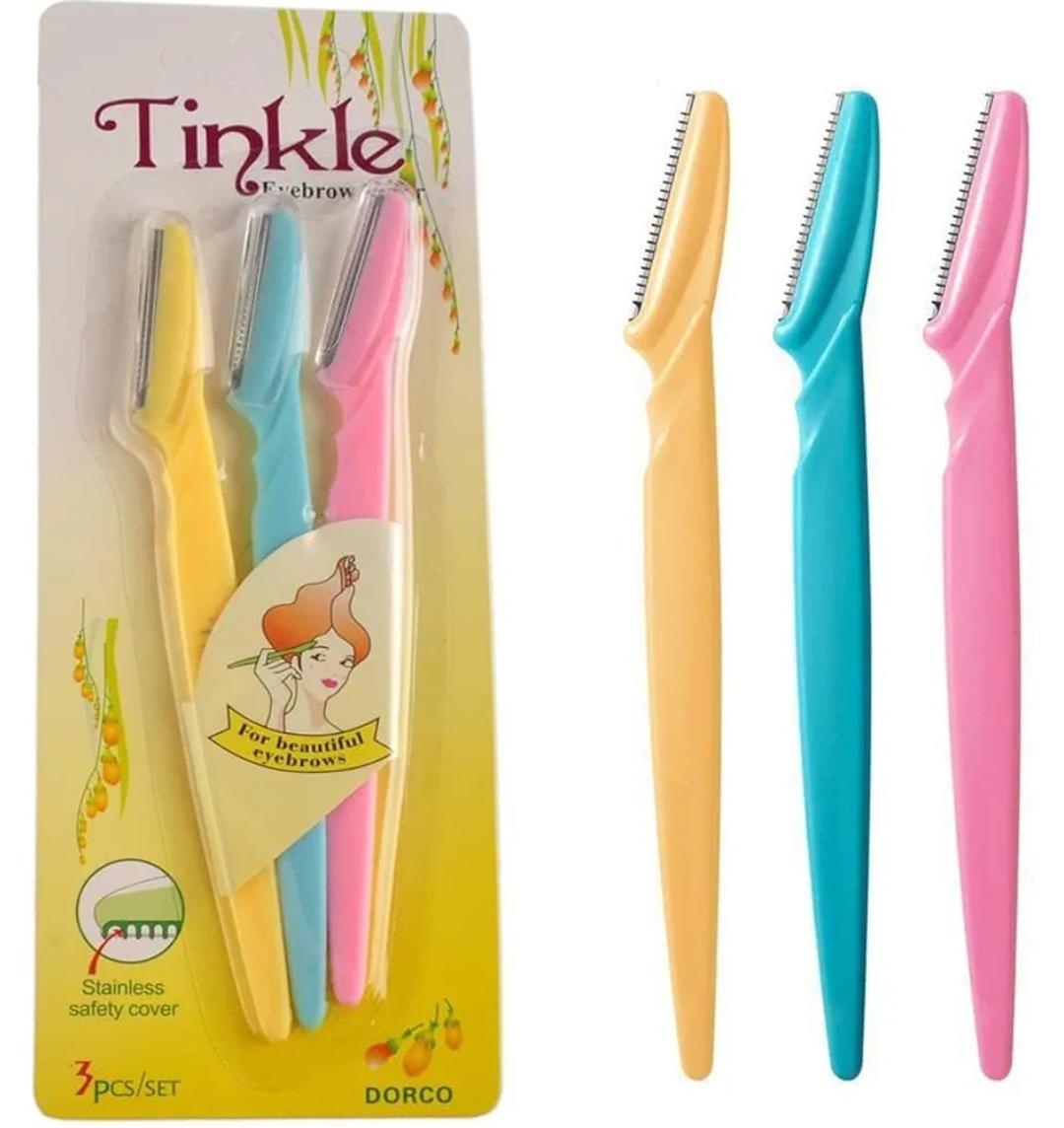 Tinkle Eyebrow Razor with Stainless Steel Blade and Safety Cover, Precision Shaper for Facial Hair Removal, 3 Piece Set SR_6895